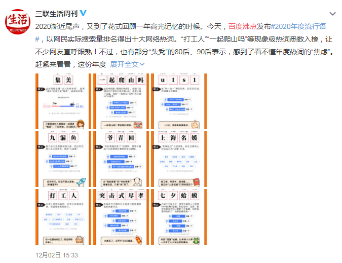当12月的日历一页页翻过,预示着让人一言难尽的2020年即将过去。前两天B站发布了2020年度弹幕,爷青回荣登第一。