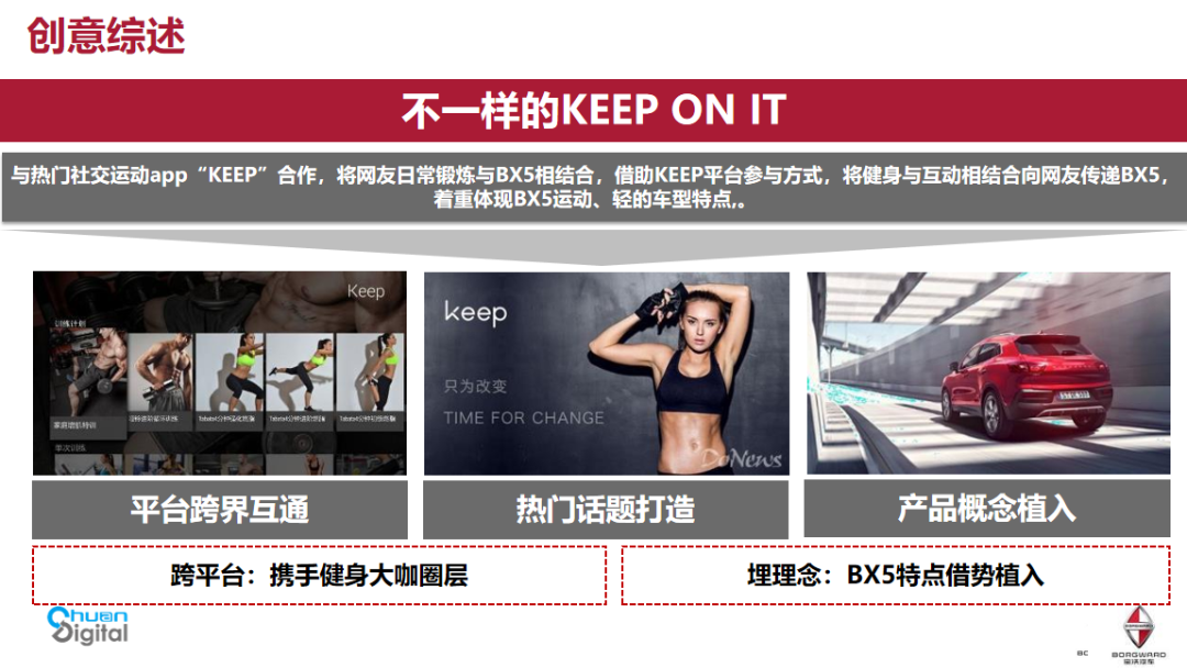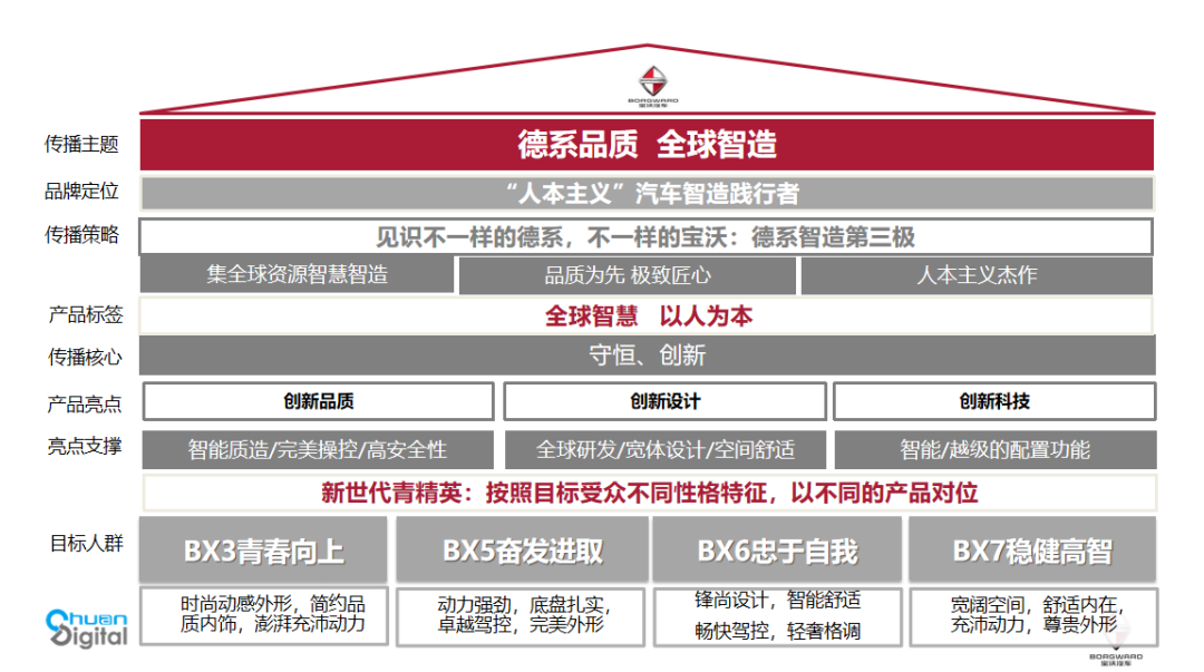 本项目由解题、策略、执行和媒介四部分组成,通过对市场,消费者的分析,推导出宝沃汽车的3+1战略方针,并围绕德系品质 全球智造的传播主题,集创新品质+创新设计+创新科技的产品亮点为支撑,全方面多维度进行整个品牌的宣传及传播,借助双微一抖+KOL+试驾活动等方法,将品牌进行扩张宣传,达到提高品牌影响力,刺激消费的目的。