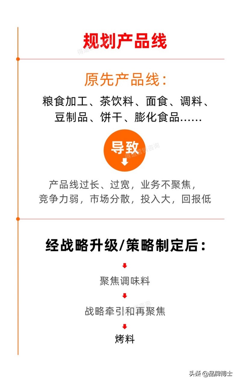 项目组经过深入细致的洞察和战略思考,以及对未来品牌打造、发展战略等综合要素的考量,并与张总及其核心成员作了进一步的沟通和商定后,最后我们提出要聚焦和发力的产品主线是‘烤料’品类上(因深入分析和各方考量,该企业前期所形成的相关优势和具备条件,以及有一定的资源积累,再结合新品牌发展战略及其他关键要素而形成,当中细节太多,现不详述)。